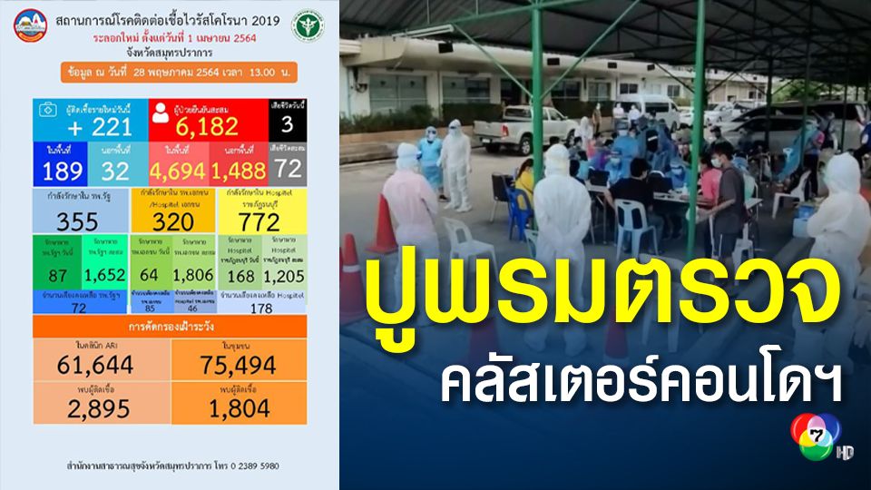 สมุทรปราการ ติดเชื้อพุ่ง 221 คน ปูพรมตรวจคลัสเตอร์คอนโดฯ 8 พันคน - ช่อง 7
