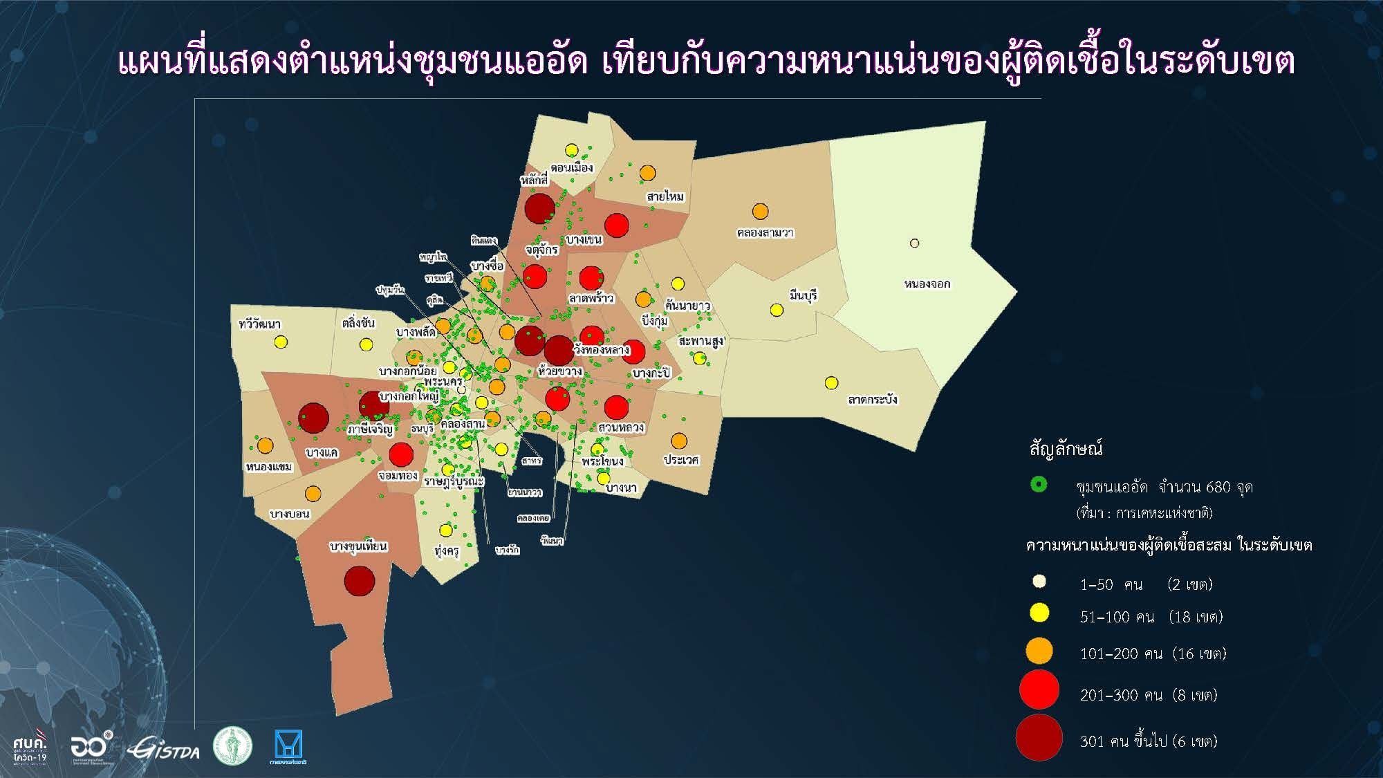 ผู้ช่วยโฆษก ศบค.กล่าวว่า อย่างไรก็ตาม ล่าสุดนำผู้ติดเชื้อทั้งหมดเข้าสู่ระบบการรักษาแล้ว 100% โดยพบว่ามี 3 ชุมชน ที่มีการติดเชื้อหนาแน่น คือ ชุมชนพัฒนาใหม่ ชุมชน 70 ไร่ และชุมชนริมคลองวัดสะพาน จากการตรวจคัดกรองเชิงรุกในพื้นที่ 3 ชุมชนนี้ ในวันที่ 27 เมษายน และ วันที่ 30 เมษายน มีรายงาน ชุมชน 70 ไร่ ตรวจ 436 ราย พบติดเชื้อ 21 ราย ชุมชนริมคลองวัดสะพาน ตรวจ 489 ราย พบติดเชื้อ 29 ราย และชุมชนพัฒนาใหม่ ตรวจ 411 ราย พบเชื้อ 49 ราย