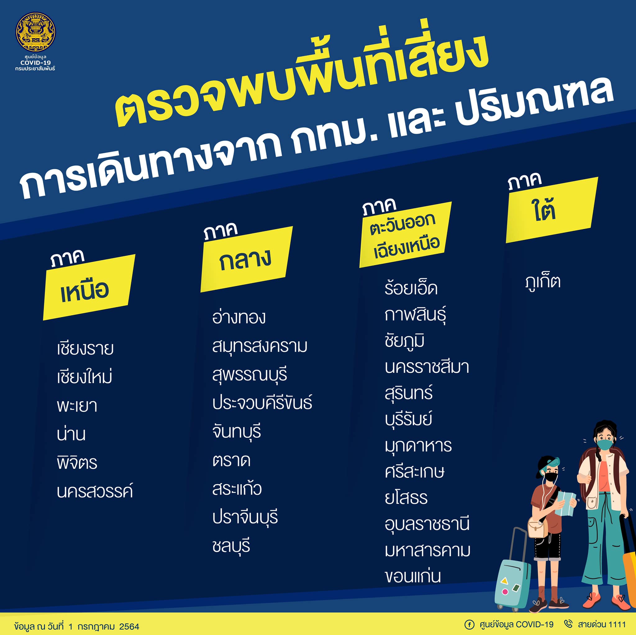 นอกจากนี้ ศบค.ยังพบว่าคนจากกทม.ที่มีการเดินทางข้ามพื้นที่ออกต่างจังหวัด หลังมีการประกาศล็อกดาวน์แคมป์ก่อสร้างในกทม. พบว่ามีการเดินทางออกจากกทม.และปริมณฑล และมีการแพร่กระจายเชื้อโควิดออกไปถึง 32 จังหวัดแล้ว กระจายไปในทุกภาคของประเทศ รวมทั้ง “ภูเก็ต” ด้วย