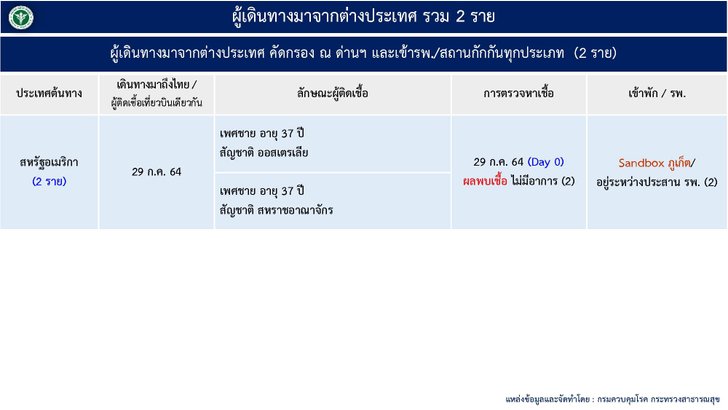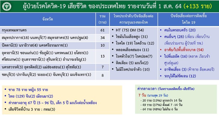 หมายเหตุ : อัปเดตข้อมูล เมื่อเวลา 12.30 น. จากการแถลงของศูนย์บริหารสถานการณ์การแพร่ระบาดของโรคติดเชื้อไวรัสโคโรนา 2019 (ศบค.)
