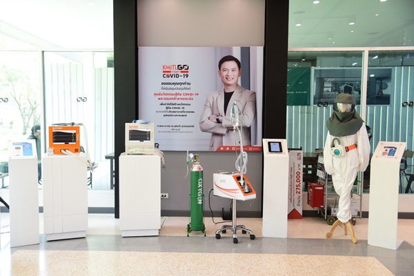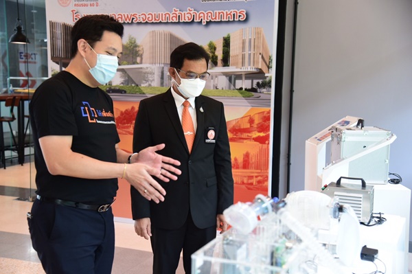 ทั้งนี้ สจล. ถือเป็นหน่วยงานแรกของไทยที่สามารถพัฒนาเครื่องจ่ายออกซิเจน High Flow เพื่อช่วยพยุงการหายใจของผู้ป่วย โดยแพทย์จะกำหนดอัตราไหลเวียนอากาศ ความเข้มข้นของออกซิเจนที่ต้องการ ควบคุมอุณหภูมิและความชื้น ก่อนปล่อยผ่านทางจมูกได้อย่างเหมาะสมและสม่ำเสมอ พร้อมด้วยระบบมอนิเตอร์ทางไกลเพื่อใช้ในการเฝ้าระวังและติดตามอาการผู้ป่วยทางไกล โดยมีประสิทธิภาพเทียบเท่ากับต่างประเทศ แต่ราคาเพียงเครื่องละ 55,000 บาท ซึ่งถูกกว่าเครื่องนำเข้า 3-4 เท่า