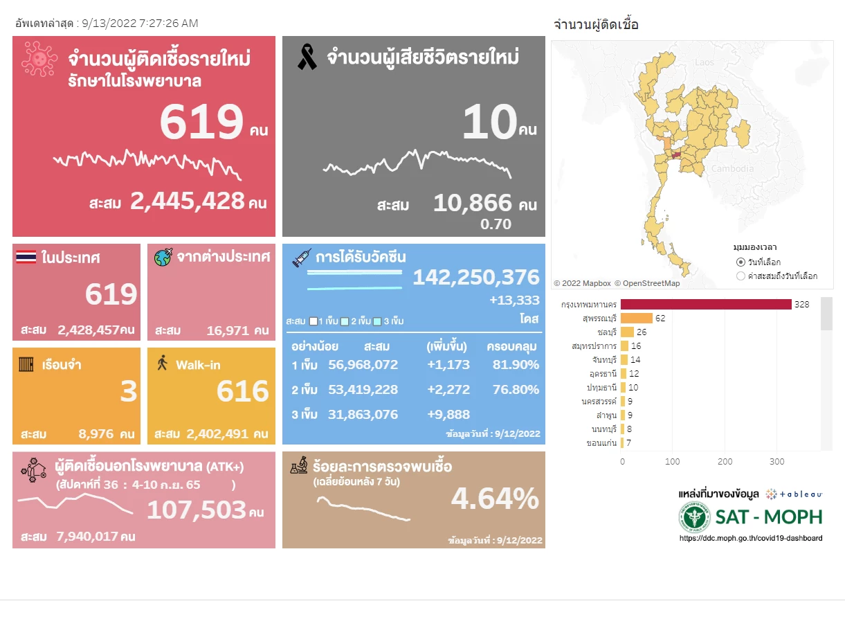 อัปเดต เกาะติดสถานการณ์ติดเชื้อ โควิดวันนี้ 13 กันยายน 2565 เกาะติดความคืบหน้า สถานการณ์โควิดล่าสุด ติดเชื้อ COVID-19 จากกรมควบคุมโรค กระทรวงสาธารณสุข เช็ก 10 จังหวัดติดเชื้อสูงสุด เช็กยอด กทม. มีผู้ติดเชื้อเพิ่มวันนี้ กทม. ยอด 328 ราย จับตา สุพรรณบุรี ชลบุรี สมุทรปราการ จันทบุรี อุดรธานี ปทุมธานี นครสวรรค์ ลำพูน นนทบุรี และขอนแก่น